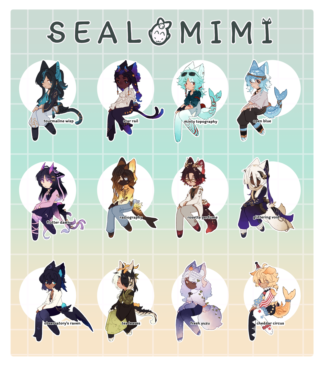 all my adoptable design rules apply to the final design!- all custom designs will be fullbody and flatcolored by default. prices can be discounted if you want less polished art (like a way rougher or uncleaned sketch), but please inquire first.
